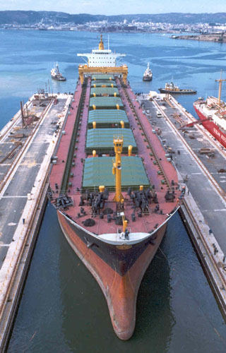 eslora era de 253,8 metros, su manga 32,3 y su puntal 19,0 teniendo un